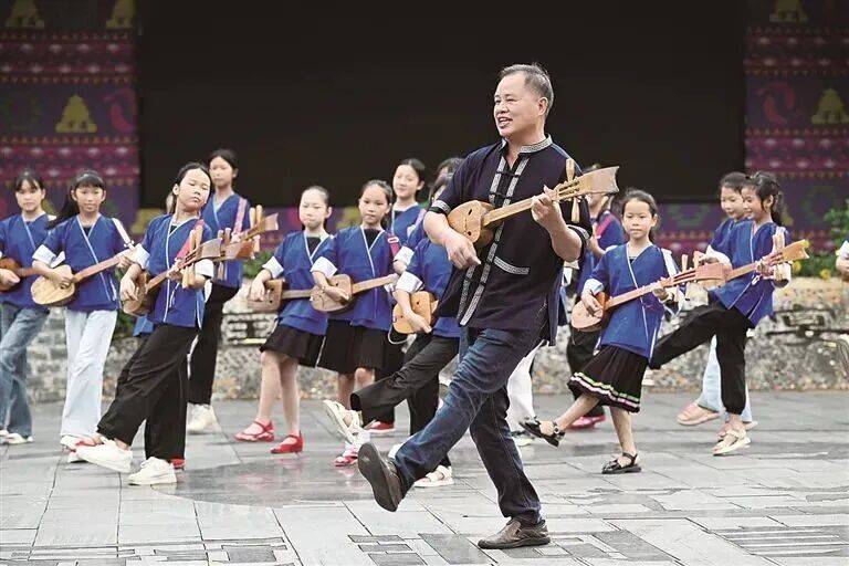“弹起琵琶唱起歌哎,将琵琶歌等非遗融入“三月三”花炮节、高友韭菜节、寨塘土豆节、美俗红糯节、高秀红薯节等平易近族节庆勾当,三江侗族琵琶歌的“出圈”,唱一唱三江平易近族连合歌。歌的海洋”。